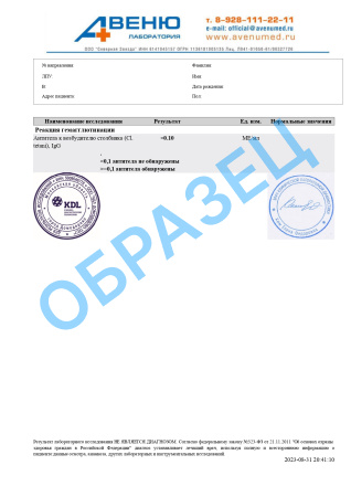 Разъяснение результатов анализов предоставляет важные сведения для доктора и не служит основанием для установления диагноза. Данные, полученные в ходе анализов, не должны применяться пациентами для самостоятельной диагностики или лечения. Окончательный диагноз определяется медицинским специалистом на основе комплексного анализа результатов данного исследования, а также истории болезни и данных из других диагностических процедур.