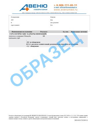 Антитела к хламидии (Chlamydia trachomatis), IgM, полуколичественно
