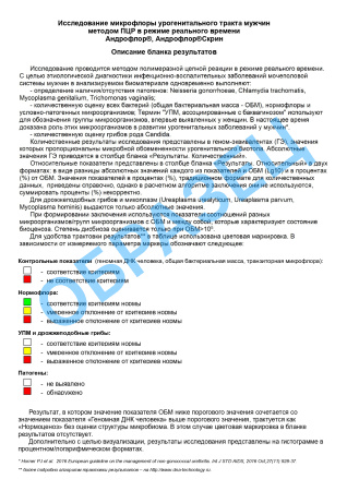 В процессе анализа определяется наличие ДНК микроорганизмов в материале соскоба уретры, в сперме или секрете простаты пациента при помощи метода ПЦР в реальном времени.