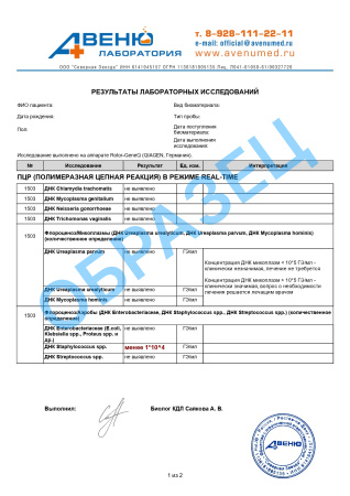 1. ДНК Хламидия трахоматис (Chlamydia trachomatis, ПЦР), кач.2. ДНК Микоплазма гениталиум (Mycoplasma genitalium, ПЦР), кач.
