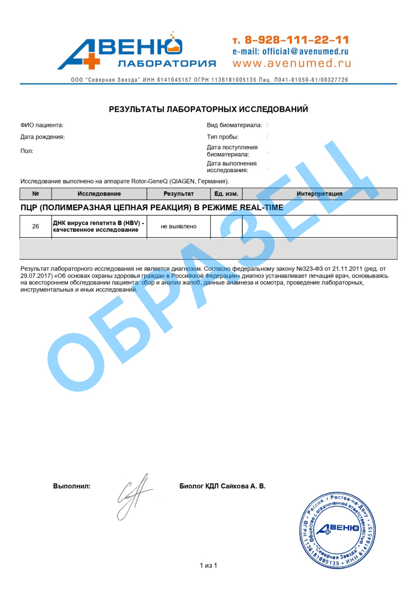 A26.05.020.001 Определение ДНК вируса гепатита B (Hepatitis B virus) в крови методом ПЦР, качественное исследование