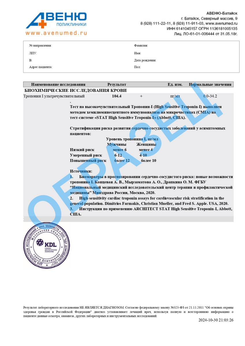 A09.05.193 Исследование уровня тропонинов I, T в крови
