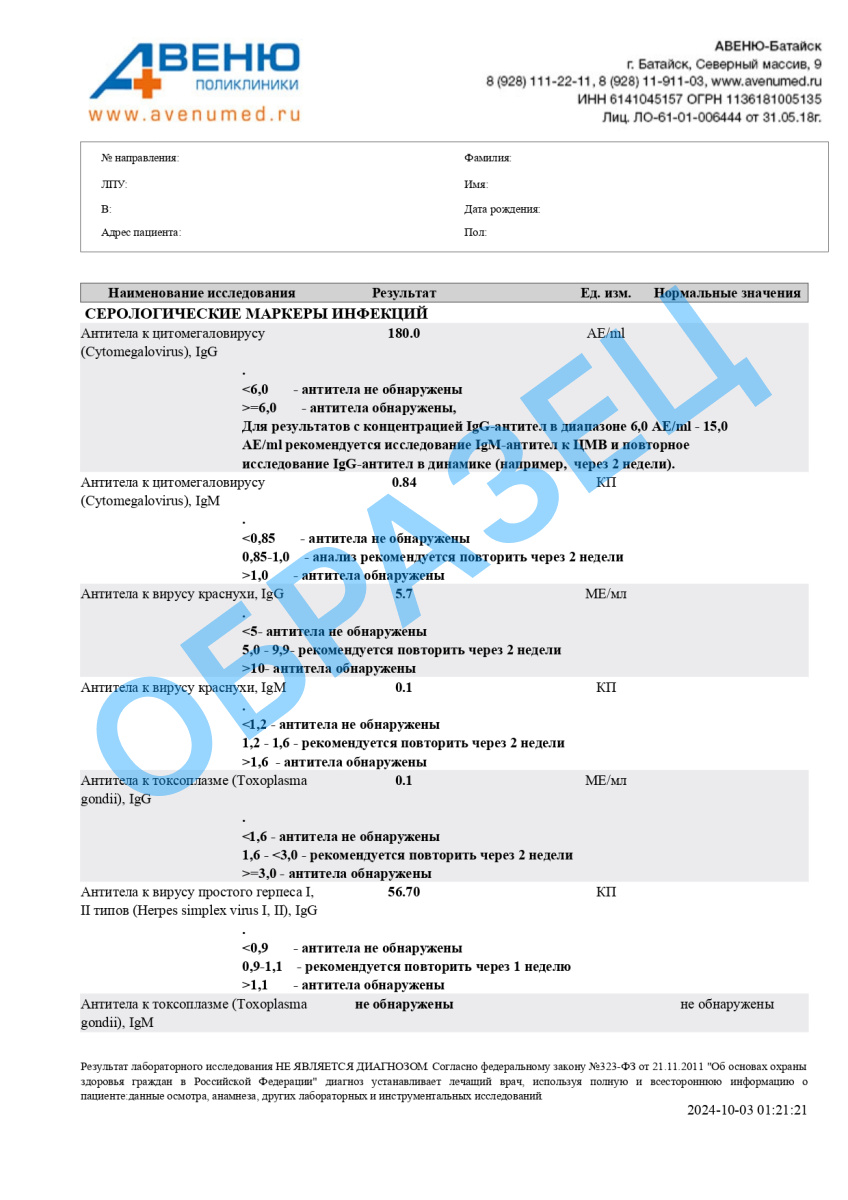 Токсоплазмоз, краснуха, ЦМВ, HSV в Батайске – IgM и IgG