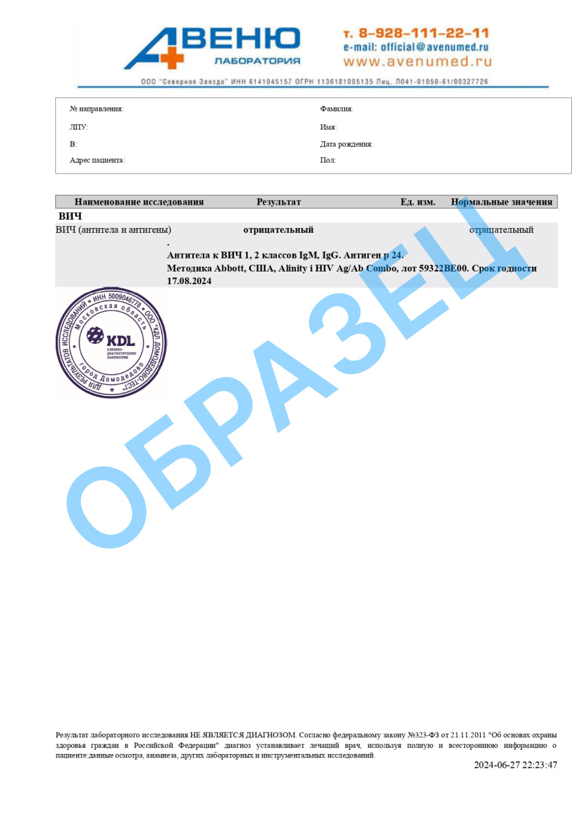 «Отрицательным» результат может быть при отсутствии вируса в организме или в период серонегативного окна (ВИЧ размножается в клетках, но антител к нему ещё нет).