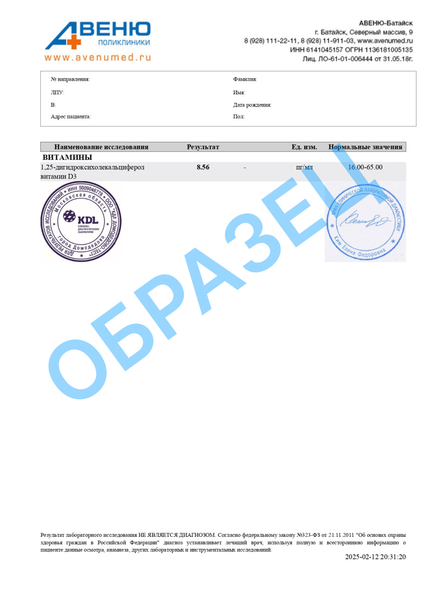 Исследование уровня 1,25-OH витамина Д в крови A09.05.221
