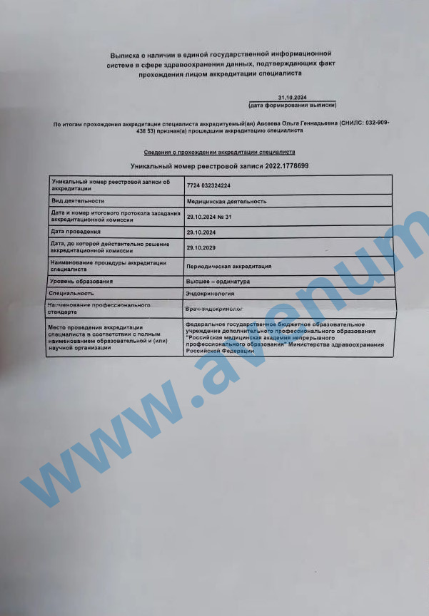 • 1999 г. - профессиональная переподготовка по эндокринологии.