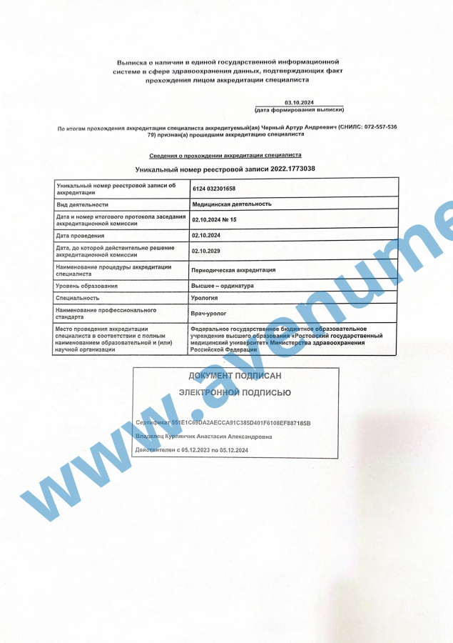 - 2009 - 2011 гг. - ординатура по урологии в РостГМУ.