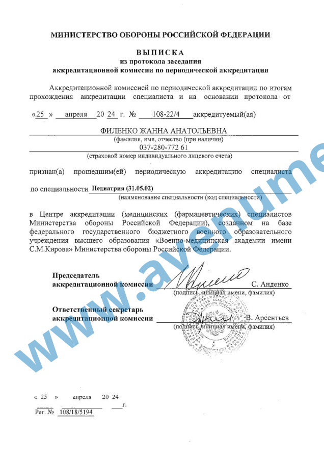 - 2019 г. - профессиональная переподготовка на базе Ростовского государственного медицинского университета по специальности "Педиатрия"