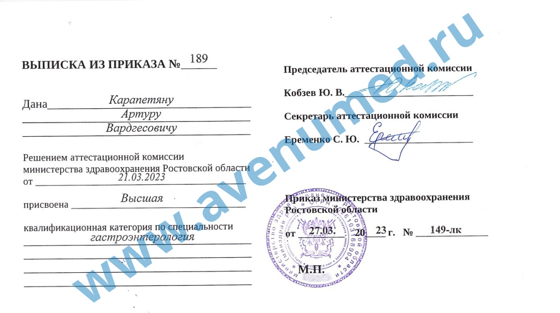 Отзывы о враче Карапетяне Артуре Вардгесовиче