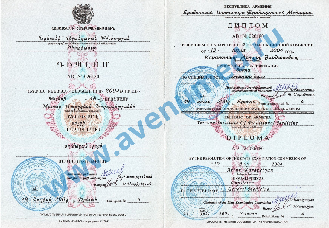 • 2004 г. - Университет традиционной медицины по специальности "Лечебное дело".