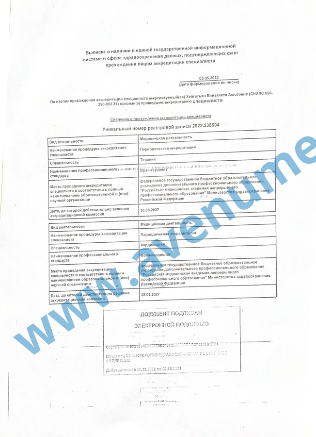 - 2003г — повышение квалификации «Современные вопросы кардиологии»