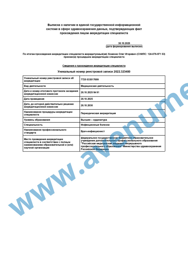 Доброго времени суток всем! Всем кто болен скорейшего выздоровления. Год назад поставили диагноз гепатит С категории 1в, местные врачи сказали что дела плохи нагрузка огромная, печень с отклонениями, если срочно не начать лечение могут быть неотвратимые последствия. Как единственный выход предложили лечиться на интерферонах в течении года, с его побочными действиями мама не горюй и сомнительным результатом в итоге. В начале думал пойти этим путем так как не видел в других поисках особого смысла так как разговор был с первыми инфекционистами республики. Затем в придаток то ли от самовнушения начала болеть печень, а иногда приходилось загинаться от сильной боли. Я полный профан того что касается медицины не люблю читать, к тому же чтение об этом приводило к еще большему стрессу так как ничего хорошего об этой болезни не писалось. Мониторя интернет нашел одну особенность, чтобы задать вопрос гепатологу на сайте той или иной клиники надо пройти путь долгой регистрации оставлять телефон, свои персональные данные и прочее в итоге получается что это ерунда какая то что еще больше раздражало, ничего вразумительного от них не дождался пока не наткнулся на страничку Олега Игоревича. Заметил в гугле если написать Хоменко само появляется Олег Игоревич в первой строке. Я в начале думал о поездке в заграницу со своим недугом или по крайней мере в Москву, но увидев что человек сидит и помимо своей работы по мере возможности каждый день отвечает людям под разными никами в интернете я подумал что в этом человеке может быть благо для меня. В общем поехал пообщался, все растолковал, предложил несколько путей и выбор более подходящего для меня. Помимо своей специальности он большей психолог, приполз к нему а улетел на крыльях. После общения с ним перестала болеть печень. Через три месяца болезнь отступила и в настоящее время при сдаче повторных анализов не наблюдается. Хочу поблагодарить Олега Игоревича за все, что он делает, пожелать ему всего самого наилучшего! Подумал если писал сюда когда мне было плохо, почему не напишу когда мне хорошо).