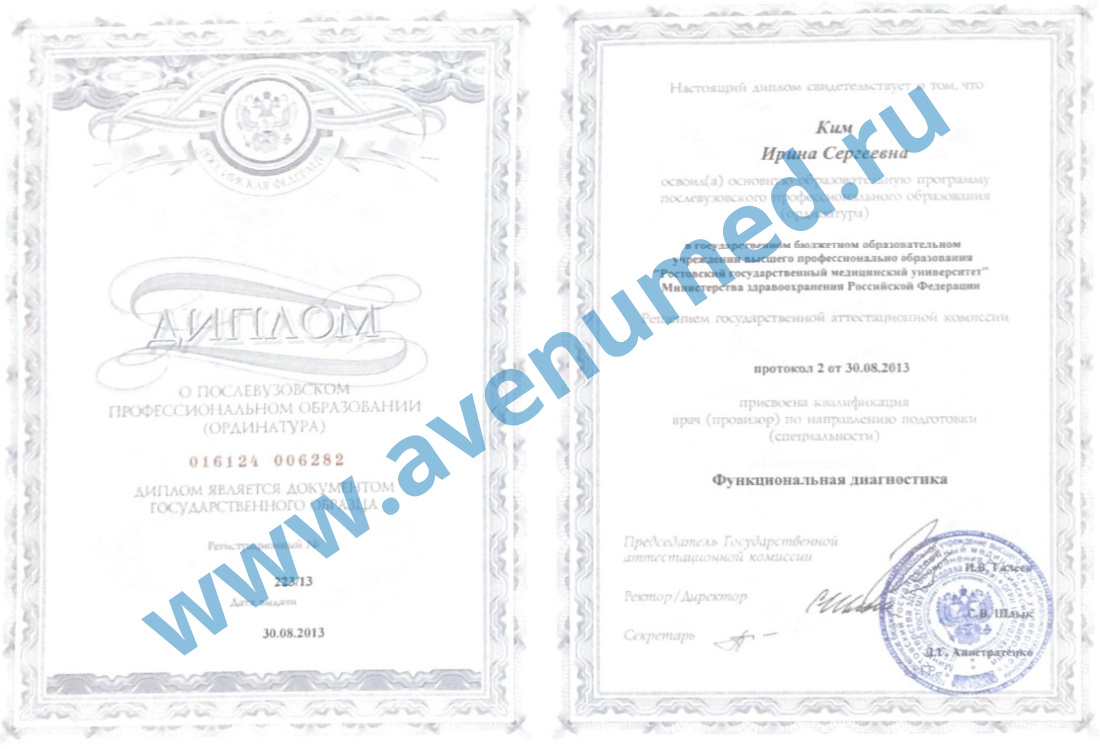 • 2013 г. - ординатура по специальности "Функциональная диагностика".