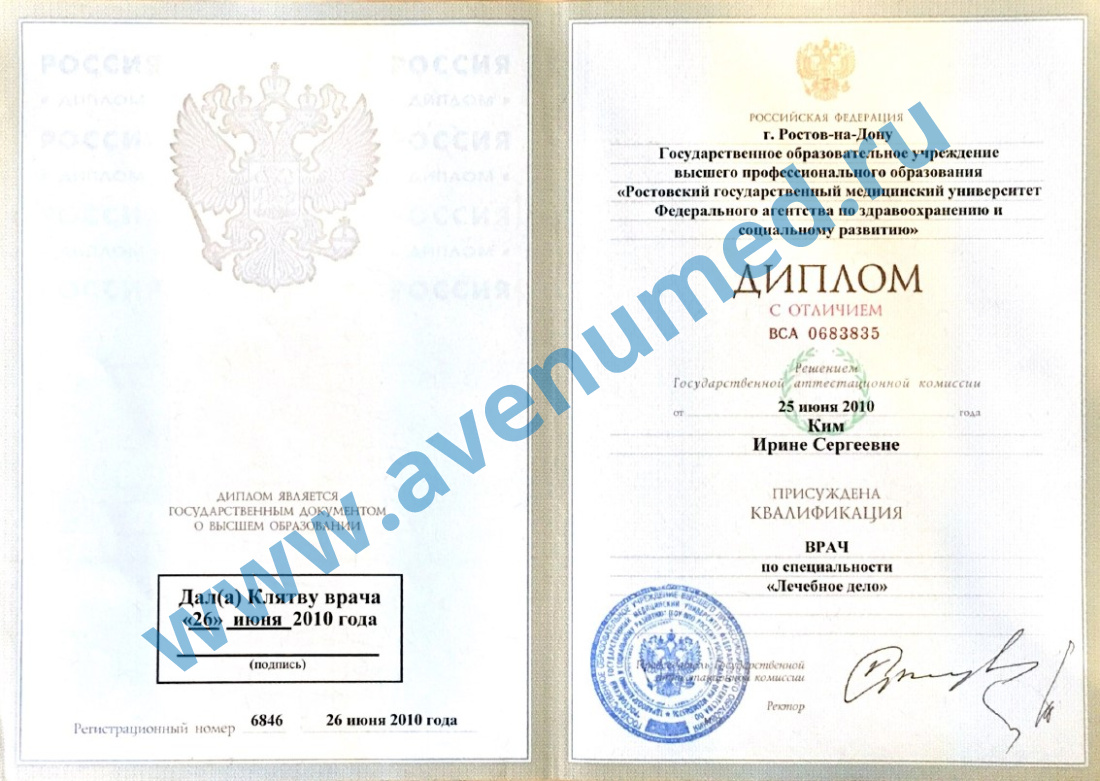 • 2010 г. - Ростовский государственный медицинский университет по специальности "Лечебное дело".