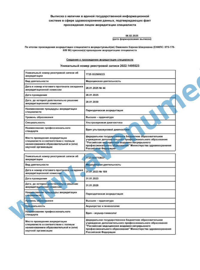 • 2006 - 2008 гг. - клиническая ординатура по специальности "Акушерство и гинекология".