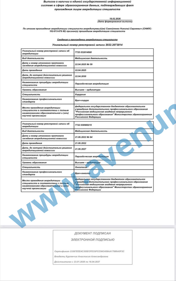 Краткая информация о враче