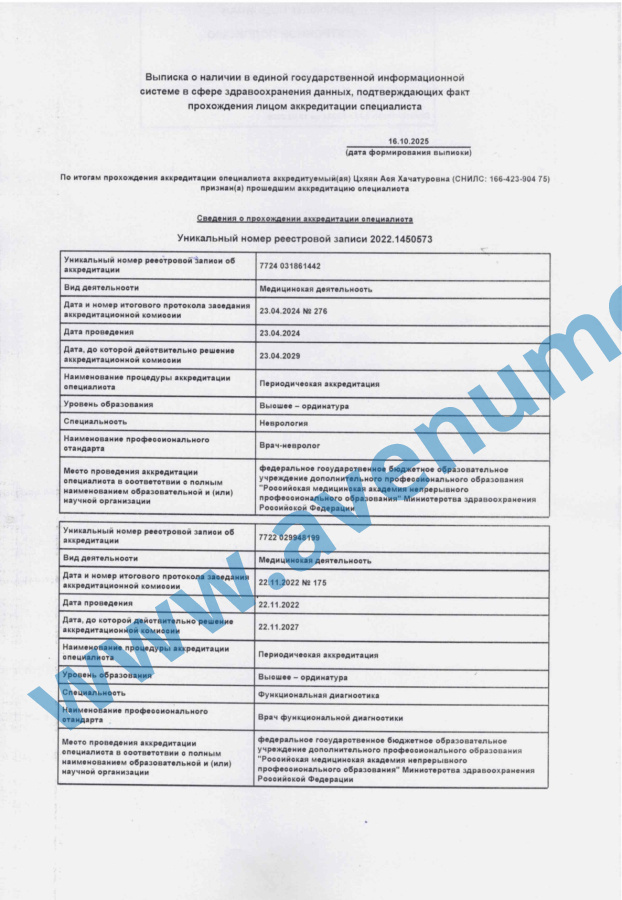 • 2017 г. - профессиональная переподготовка по Функциональной диагностике.